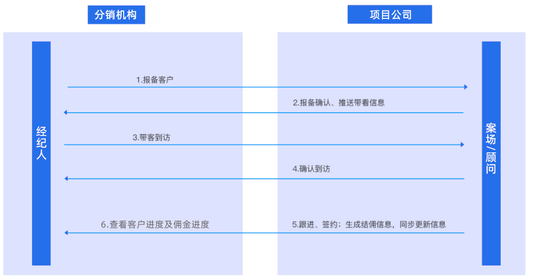 案场人员可以用手机进行到场确认,状态调整及到访资料上传等后端管理人员可以通过分销系统后台查询和管控最新的报备、到场、成交情况,掌握各个楼盘最新的客户信息和报备进度。
